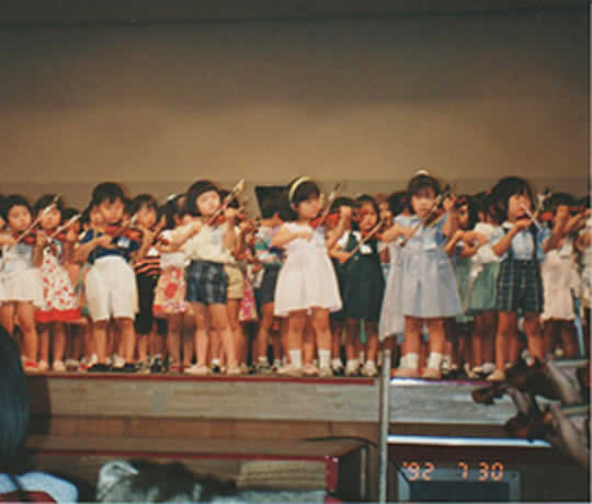 お友達と楽しく遊びながら、一緒にヴァイオリンを学び、弾く機会を多く設けております。 当教室主催の「新年会」、「発表会」、「弦楽チャリティーコンサート」の他、スズキ・メソード本部主催の長野県松本市での「夏期学校」や、スズキ・メソード地域支部主催の「三重大会」「東海大会」といった演奏会などで、全国、全世界のお友達と一緒に音楽を奏で、聞き、楽しむことができます。